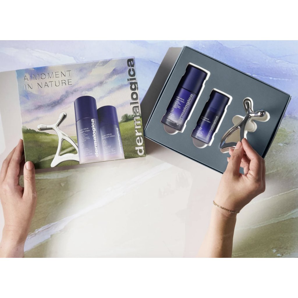 A Moment In Nature je exkluzivní dárkový balíček, který kombinuje dvě plné velikosti ikonických krémů řady Phyto Nature a luxusní masážní Gua Sha roller. Společně tvoří silný anti-age rituál, který pomáhá zpevnit kontury obličeje, vyhladit jemné linky a podpořit přirozenou regeneraci pleti.
