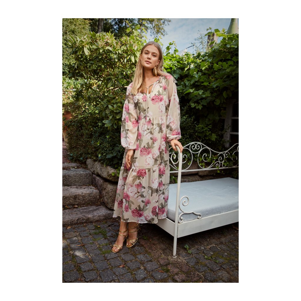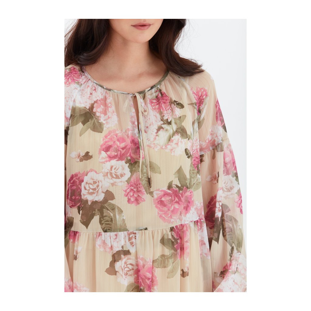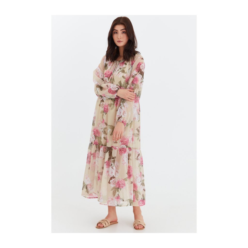 Letní lehoučké šaty volného střihu s dlouhým rukávem a spodničkou, která má posuvná ramínka.
