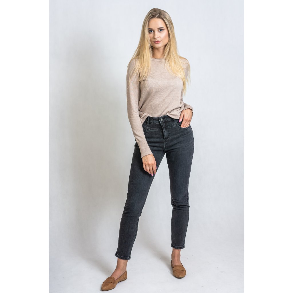 Pohodlné džíny s vyšším pasem a zkrácenou délkou.