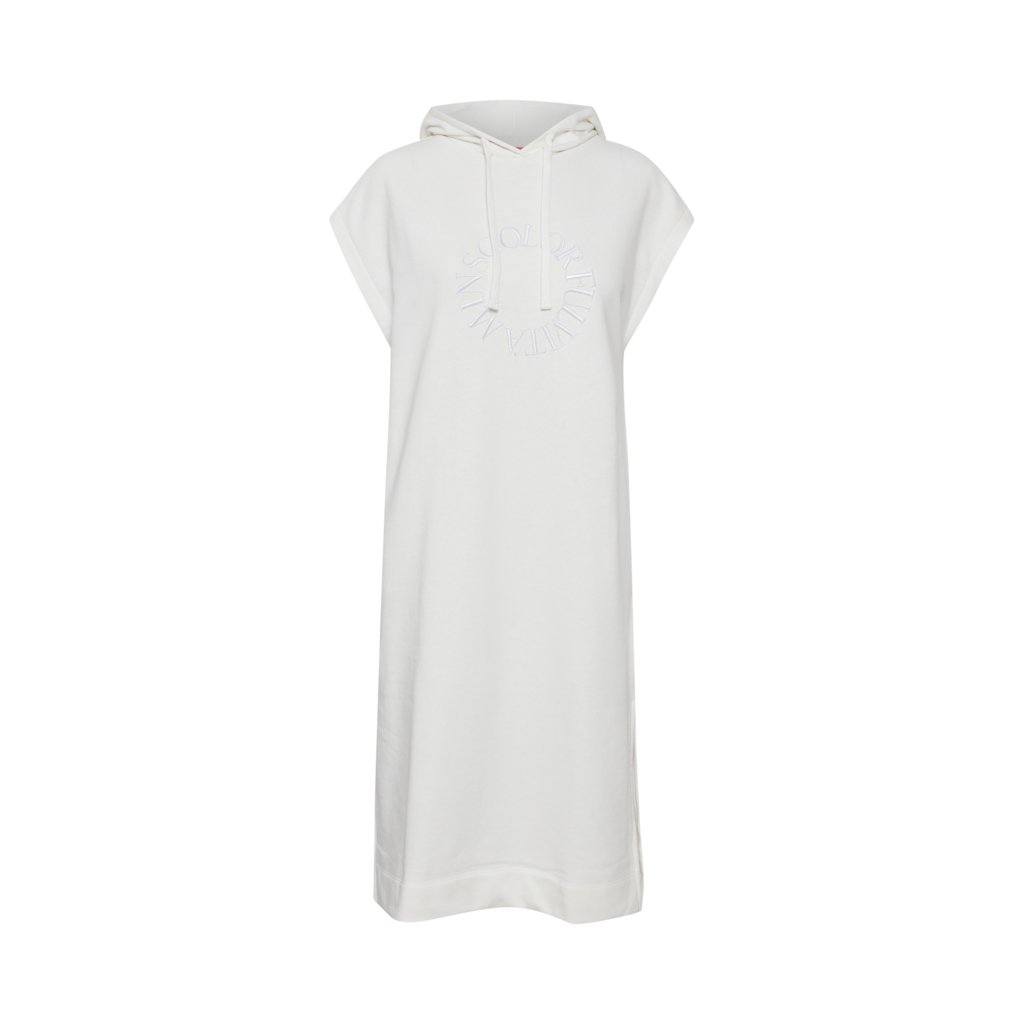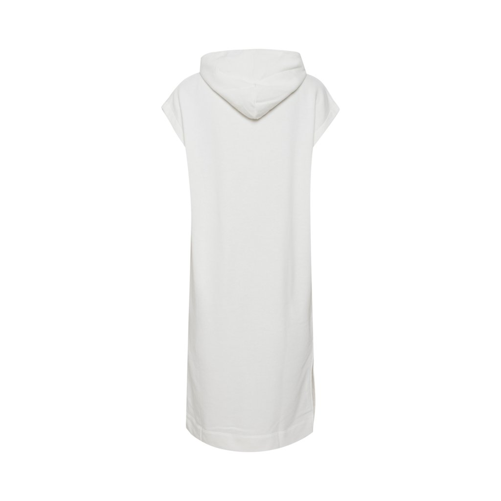 Bílé, dlouhé šaty mikinového typu bez rukávů, s kapucí.