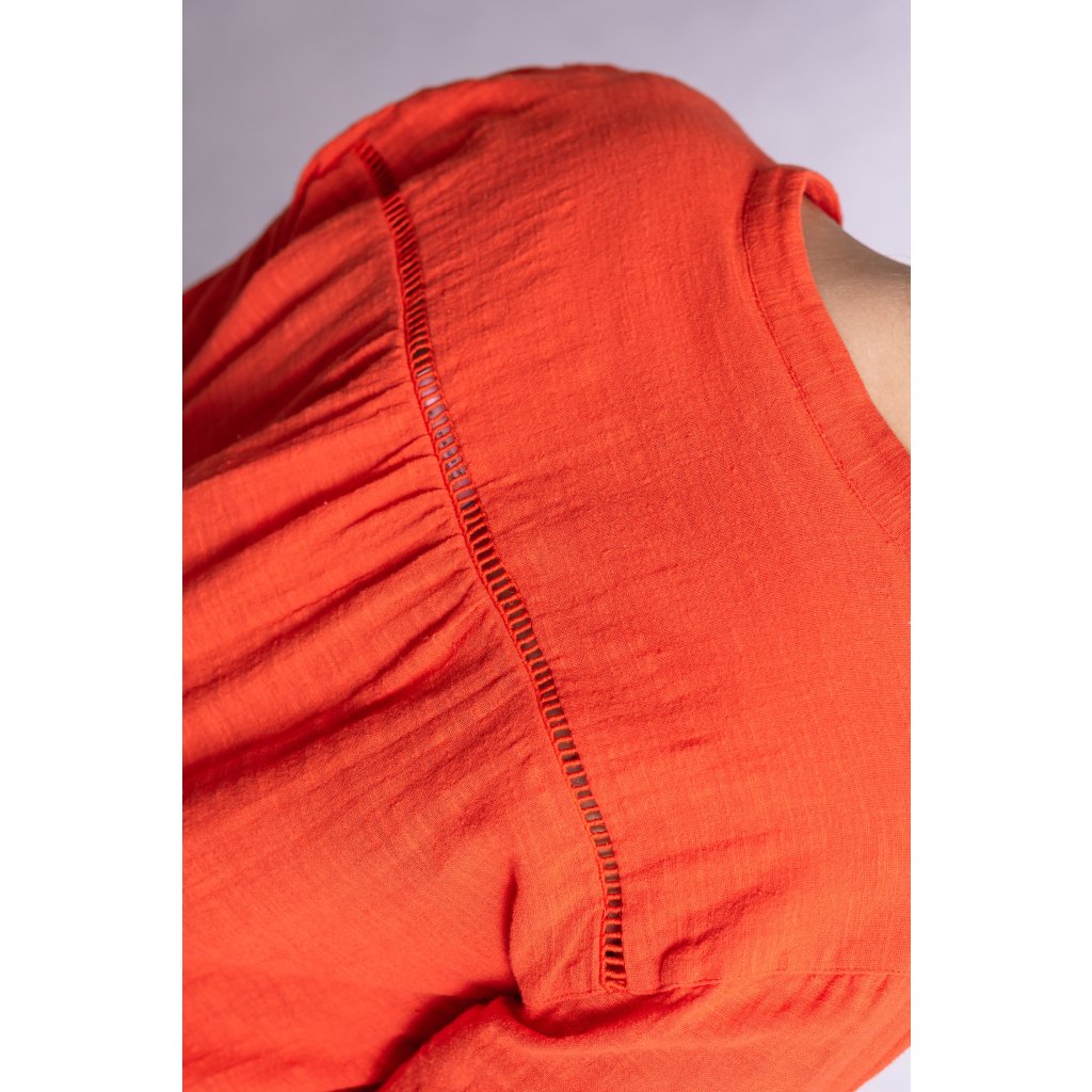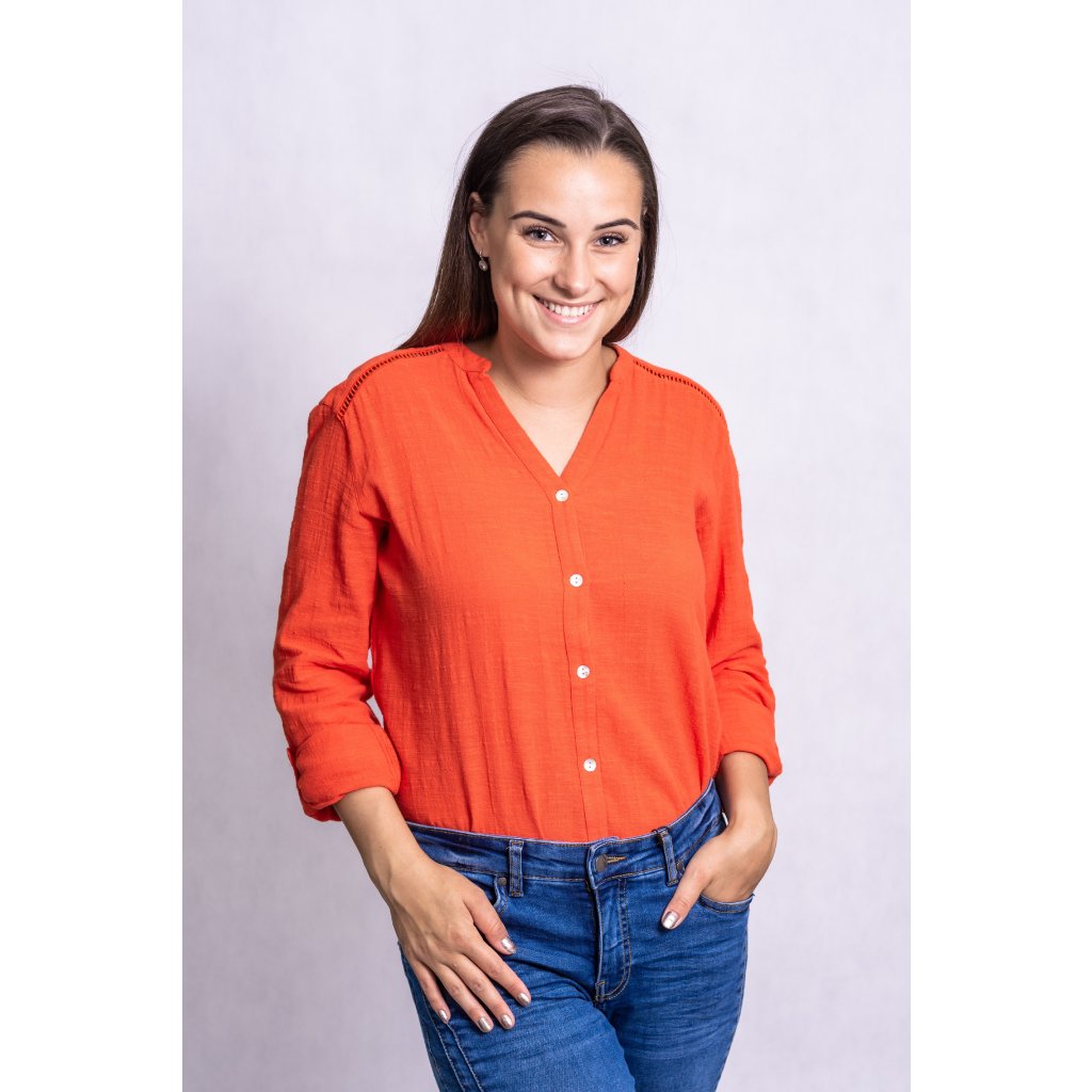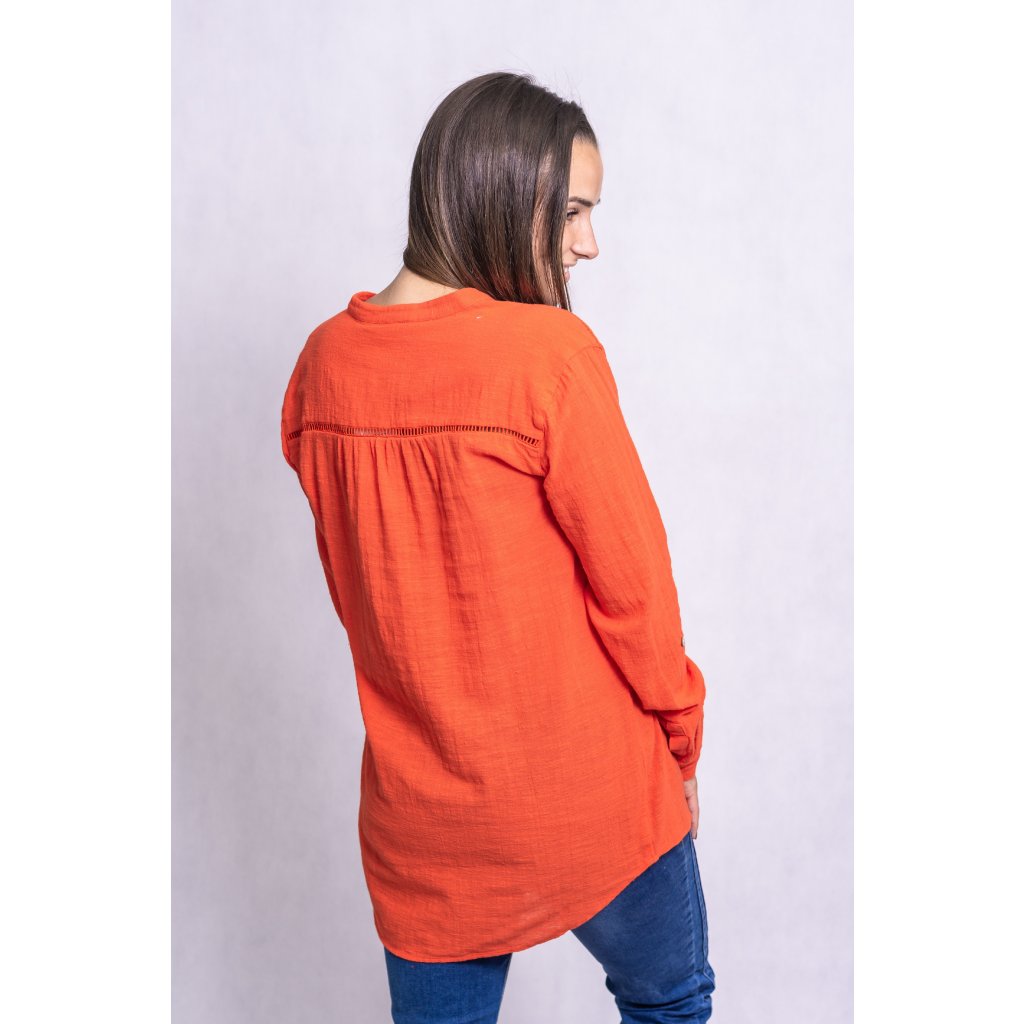 Lněná košile volného střihu. Rukávy lze ohrnout a sepnout pomocí knoflíčků.