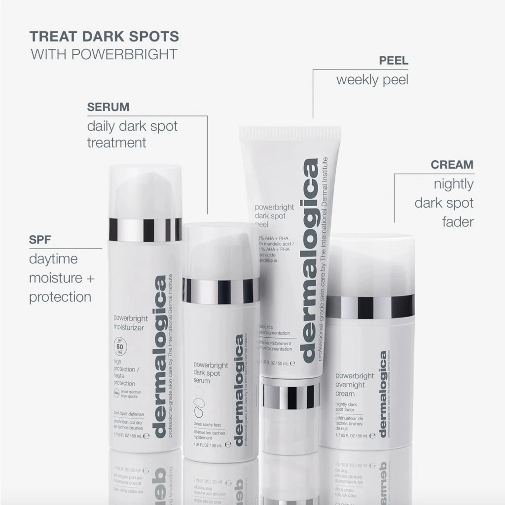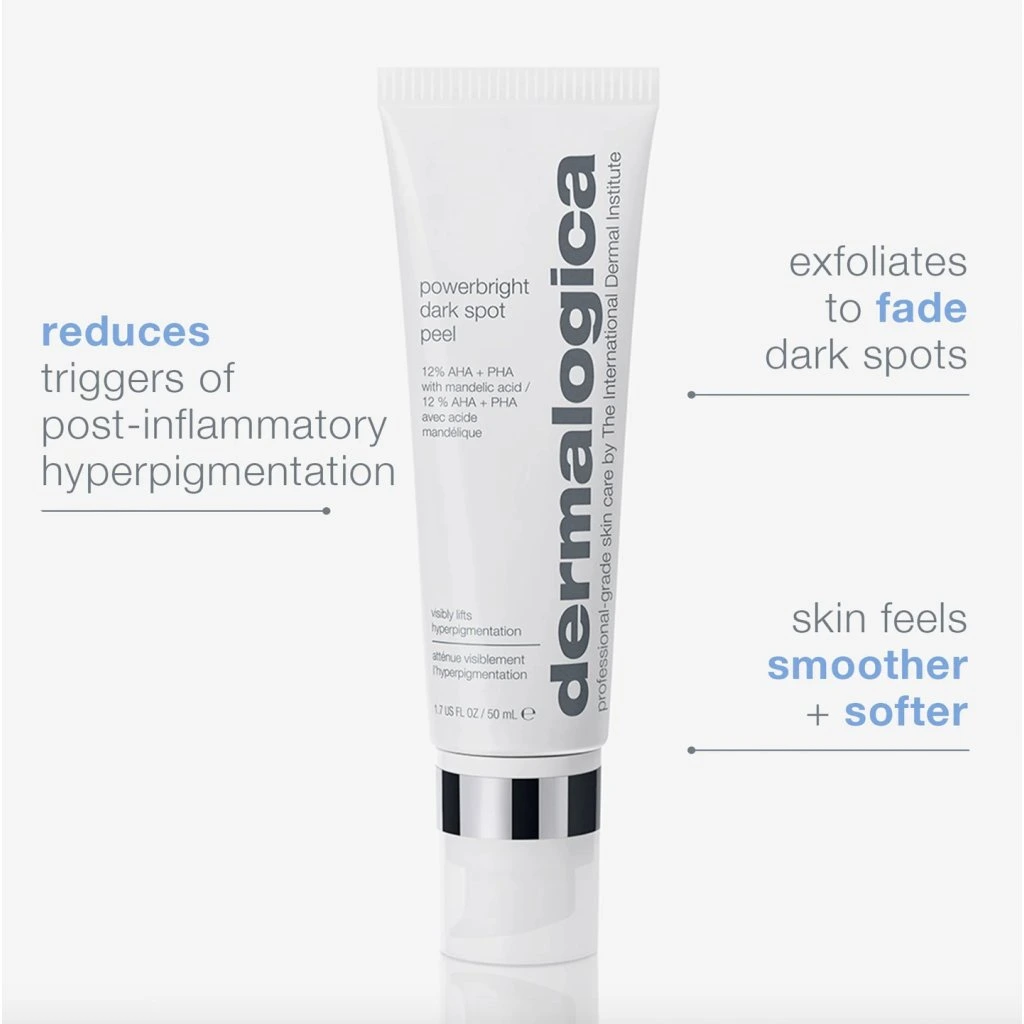 PowerBright Dark Spot Peel je vysoce účinný domácí peeling s 12 % AHA + PHA kyselin, navržený pro redukci tmavých skvrn a sjednocení tónu pleti. Pomáhá viditelně zesvětlit povrchovou hyperpigmentaci, včetně skvrn způsobených UV zářením, pozánětlivých stop a melasmatu.