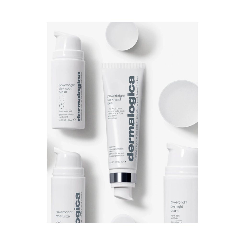 PowerBright Dark Spot System je komplexní sada navržená pro viditelné zesvětlení hyperpigmentace a dlouhodobé sjednocení tónu pleti. Kombinuje intenzivní exfoliaci s každodenní cílenou péčí, která pomáhá redukovat tmavé skvrny a předcházet jejich opětovnému vzniku.