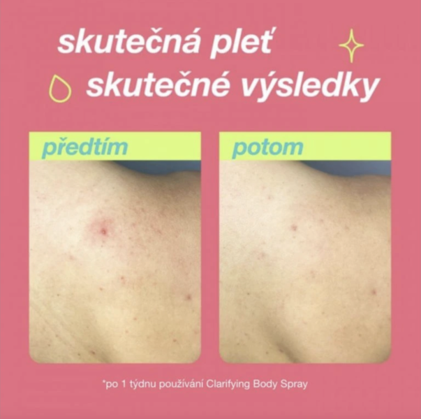 Pokud trpíte na silnější formou akné, doporučuji před aplikací spreje použít Breakout Clearing Foaming Wash u dospívajících, případně Clearing Skin Wash u akné v dospělosti. Pokud jste sporťák a věnujete se cvičení pravidelně, vezměte sprej s sebou a aplikujte po sprše, po cvičení. Pokud trpíte na akné (záněty) i na jiných místech po těle, lze jej aplikovat kde je potřeba.