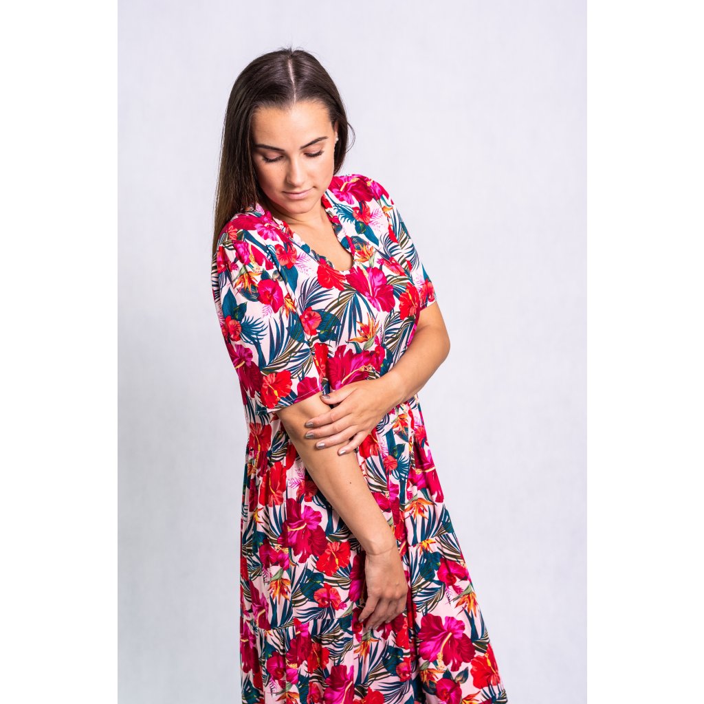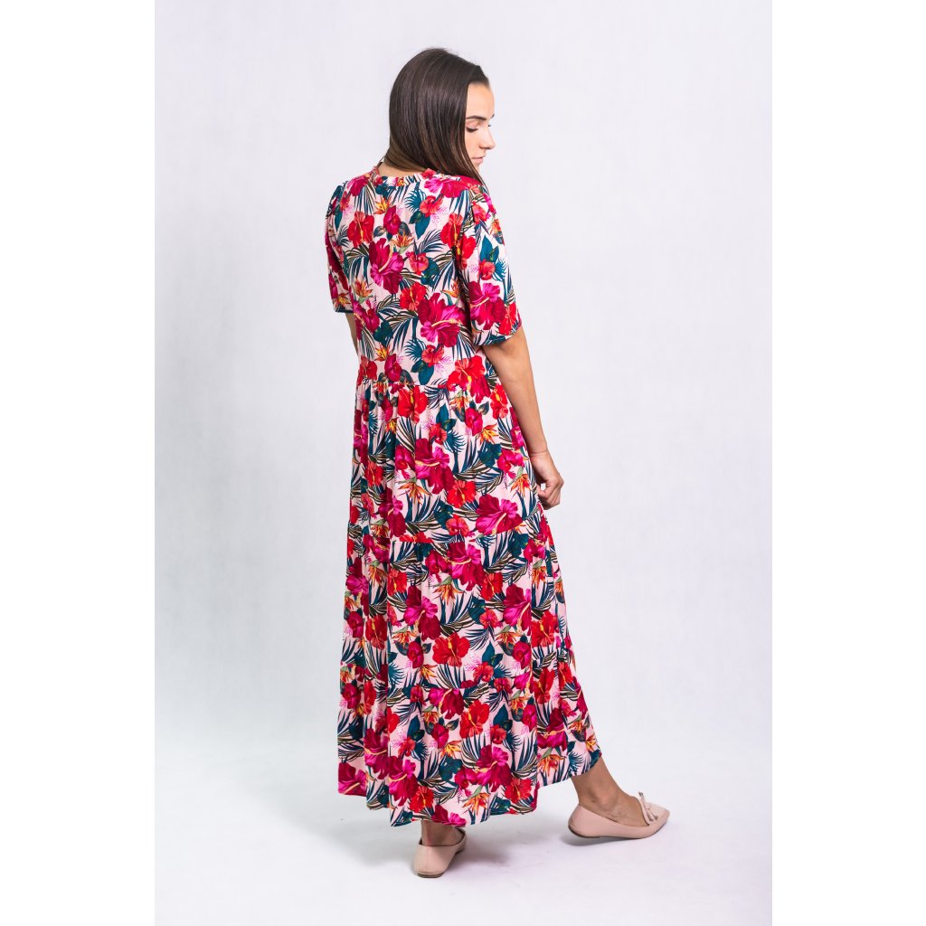 Lehké maxi šaty s letním květinovým vzorem.