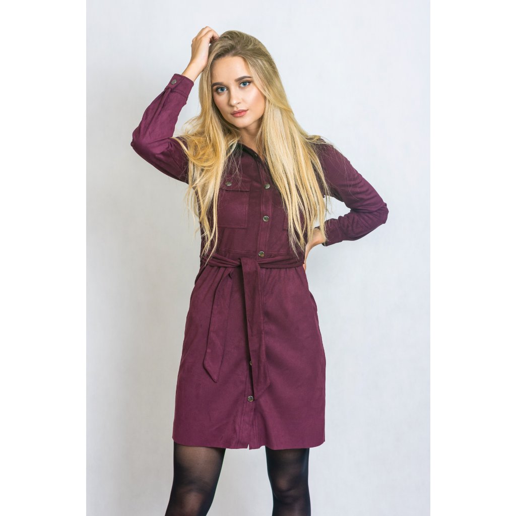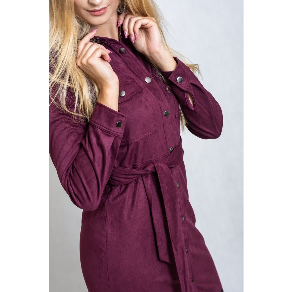 Pohodlné, semišové šaty s náprsními kapsami a zapínáním na cvoky. Pásek je součástí.