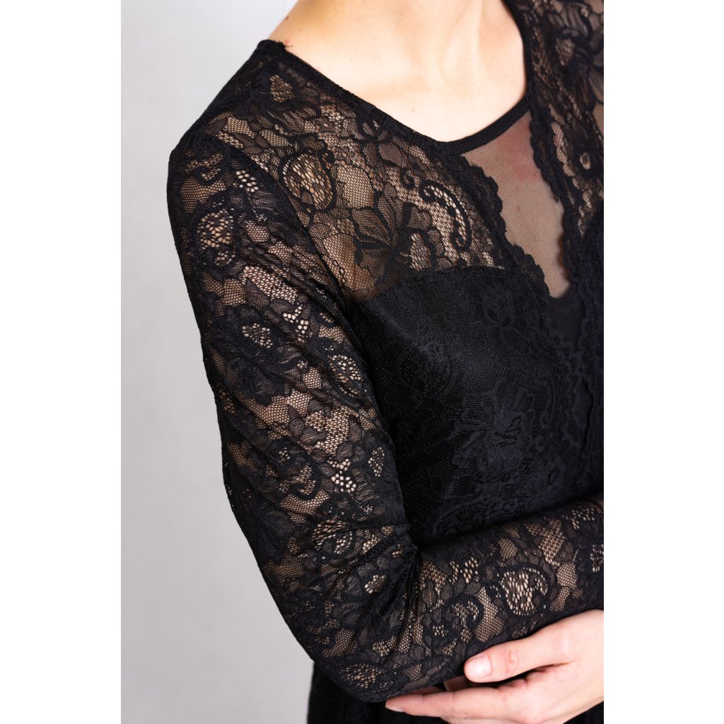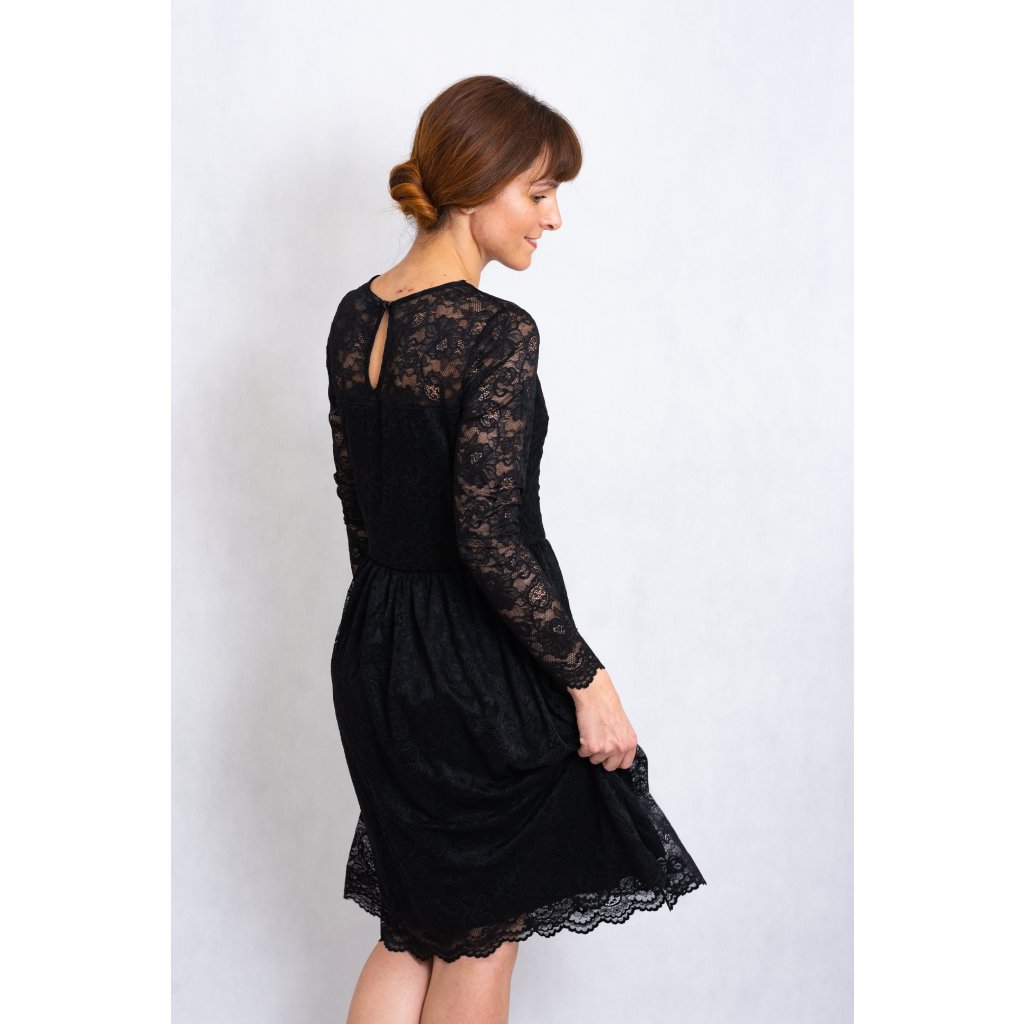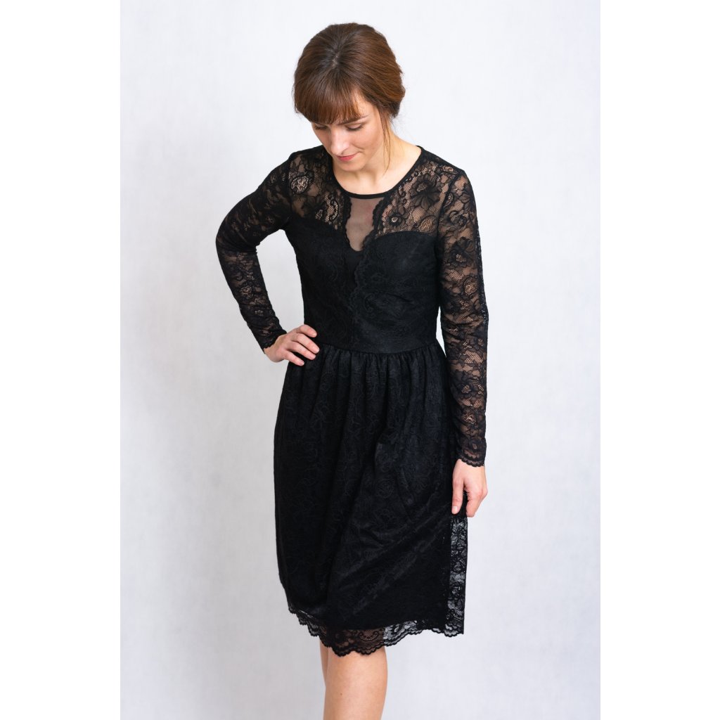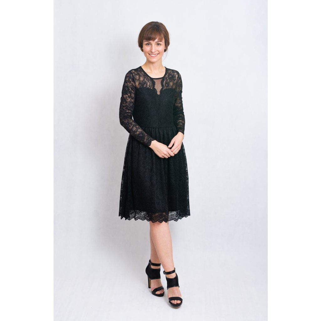 Večerní nadčasové malé černé. Šaty jsou jedinečné díky srdíčkovému výstřihu a krajce, která je velice příjemná na těle. Sukně s podšívkou.