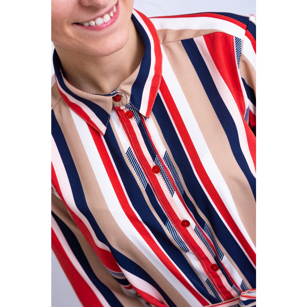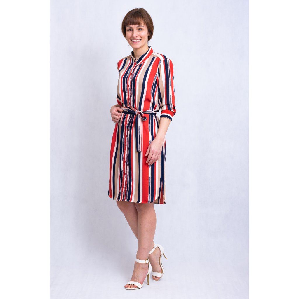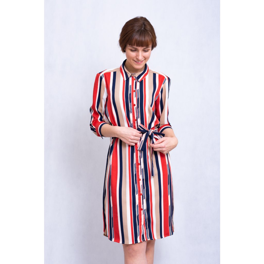 Dámské košilové šaty s páskem, propínání na knoflíky.
