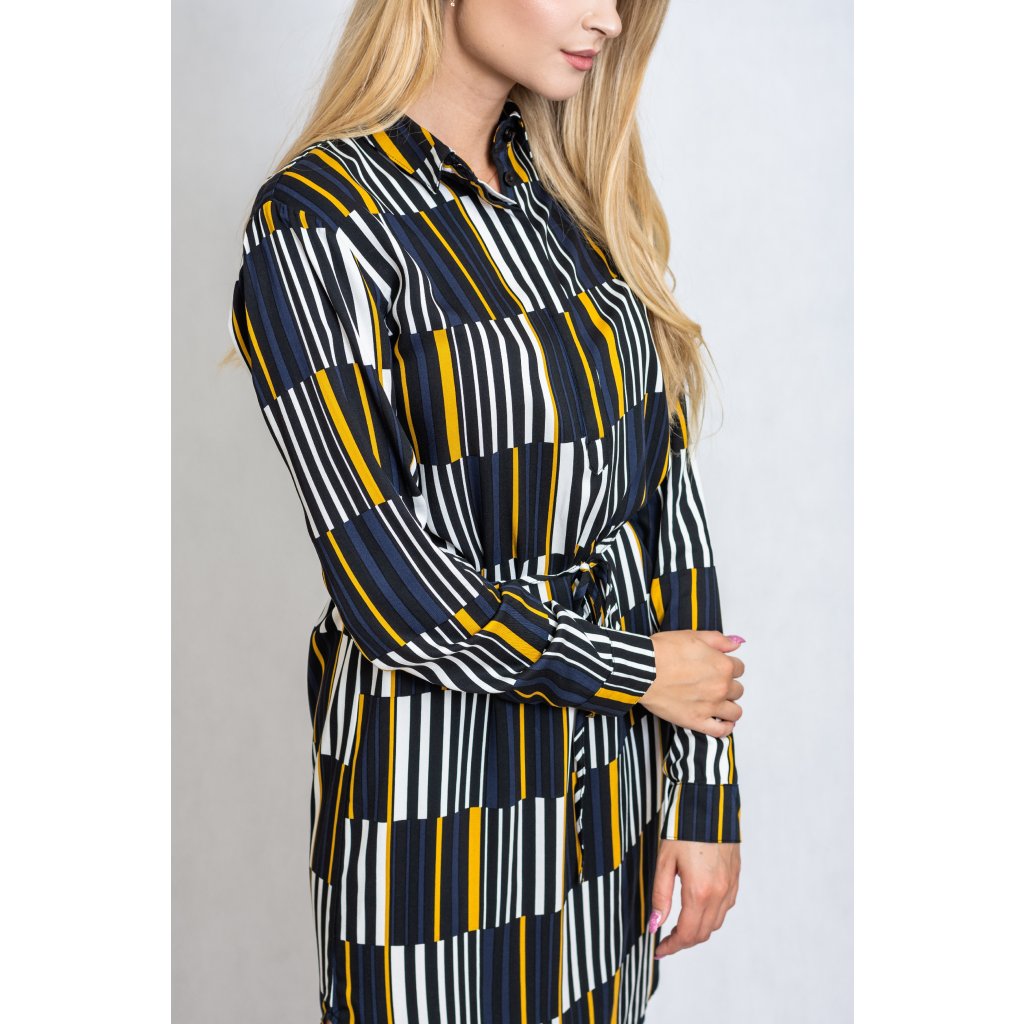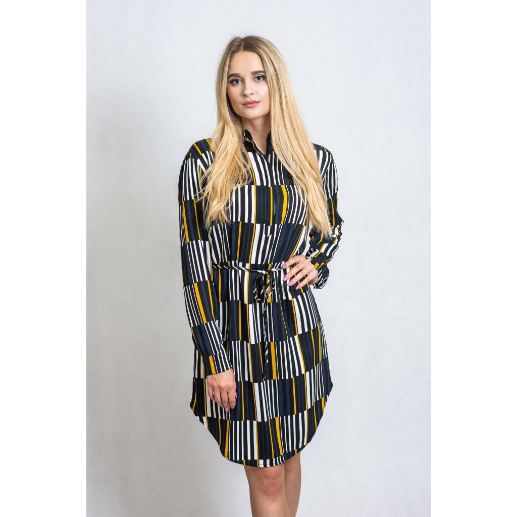 Košilové šaty volného střihu s dlouhým rukávem, jemným rozparkem po stranách a tenkým páskem.