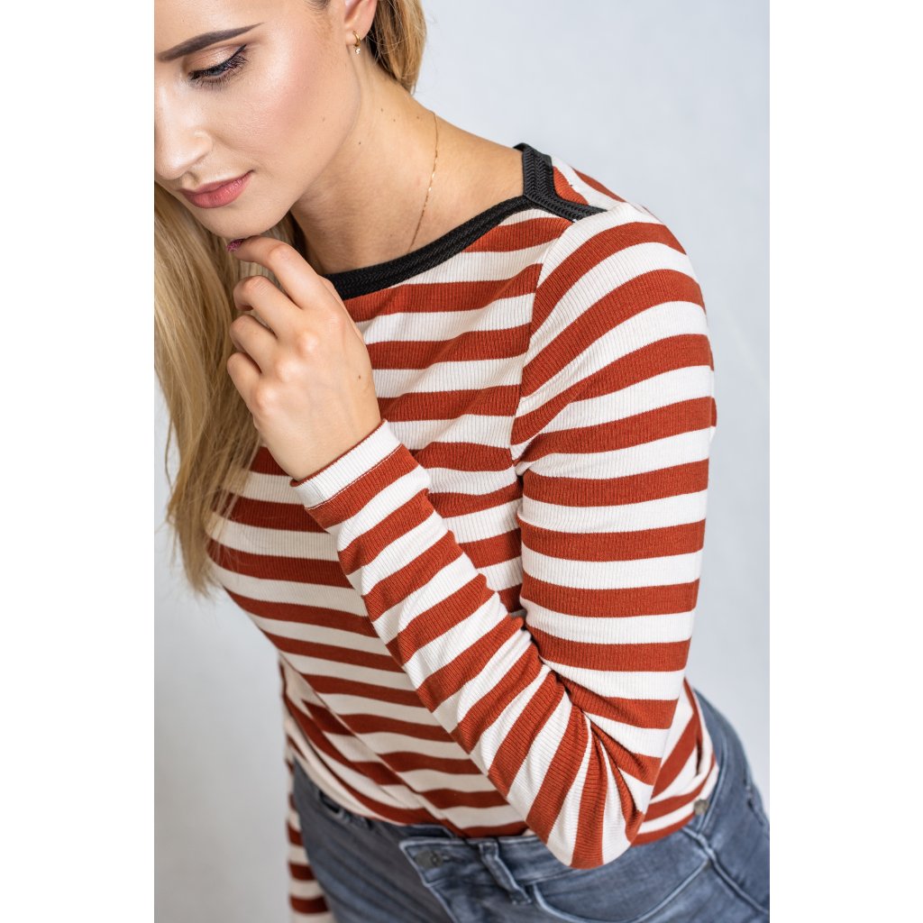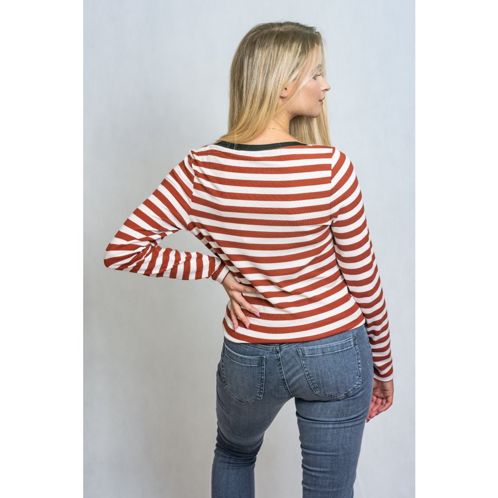 Tričko s dlouhým rukávem a pruhy v cihlové barvě.