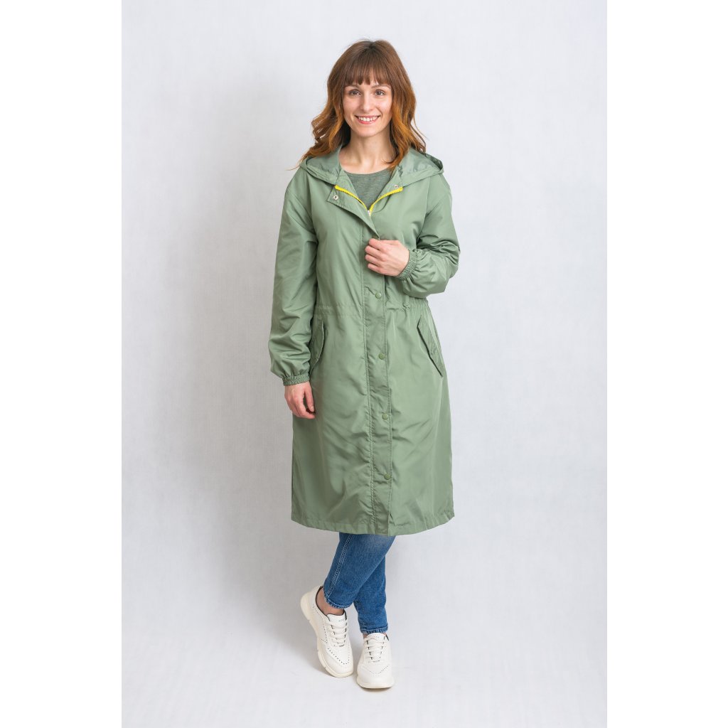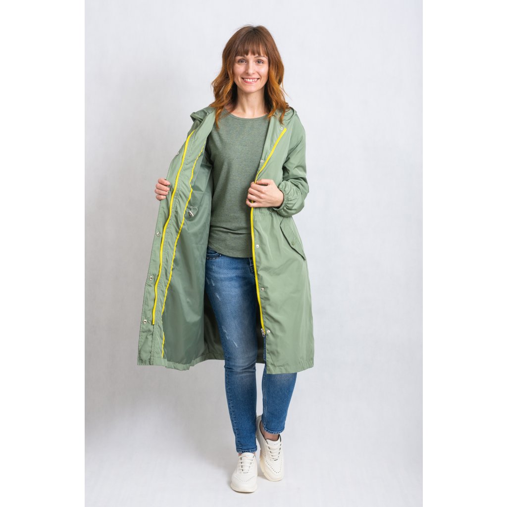 Větrovka s kapucí, na stažení v pase pomocí jezdců. Zapínání - žlutý zip a cvoky.